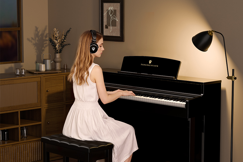 帶上耳機(jī)靜音練琴,沉浸在自己的音樂世界 |